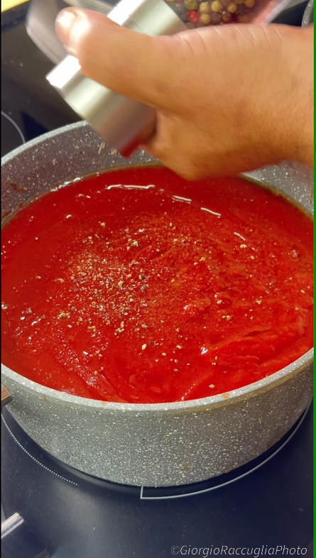 Jetzt gießen Sie die Tomatenpassata ein,