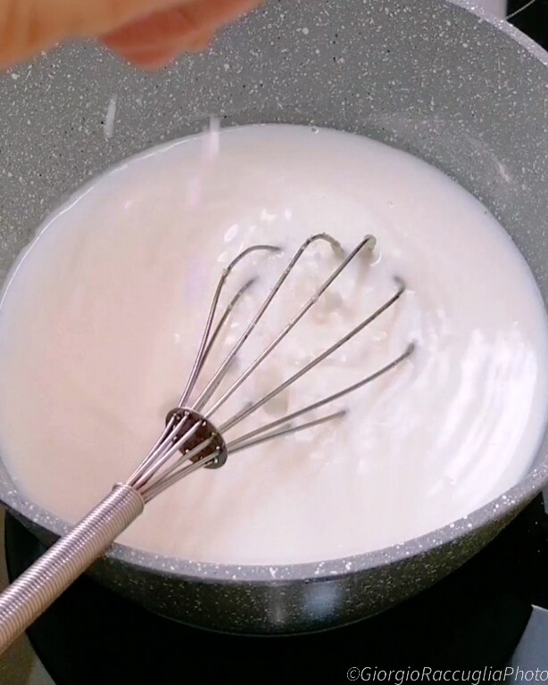 Nachdem Sie alle Zucchini gegrillt haben, bereiten Sie die Béchamelsauce vor. Lassen Sie die Butter in einem Kochtopf schmelzen, fügen Sie das Mehl hinzu und