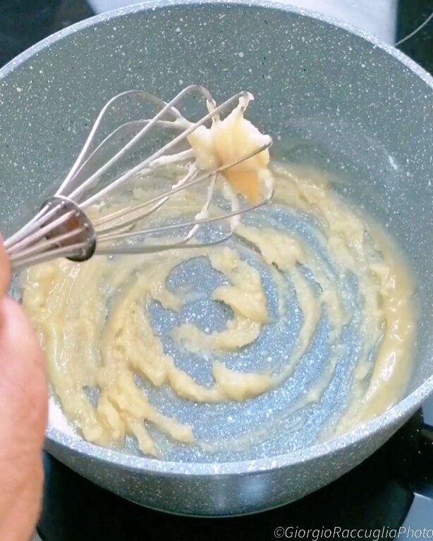 und rühren Sie weiter mit dem Schneebesen, bis es andickt.
