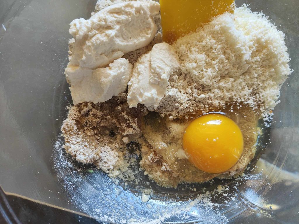 In einer Schüssel den frischen Ricotta mit dem Amaranth, dem Pfeffer, der Muskatnuss, dem Ei und dem geriebenen Käse vermengen.