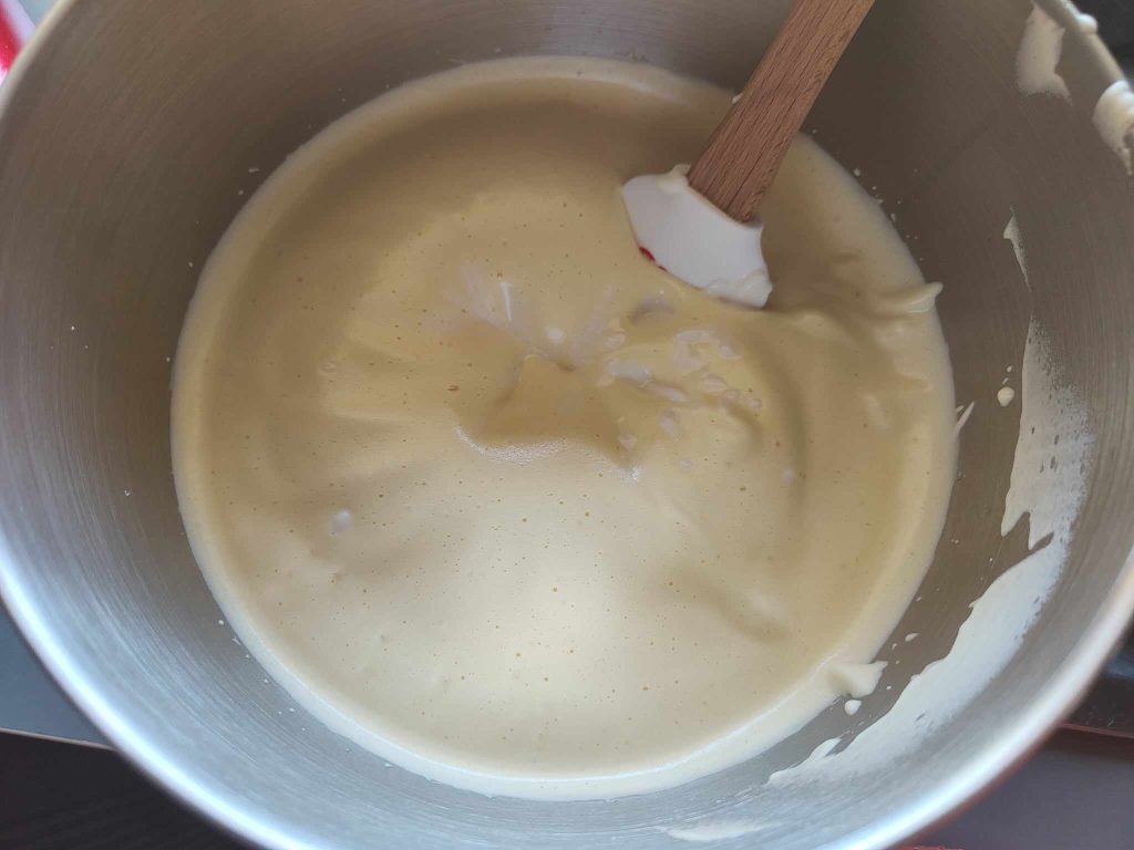 Ich habe die Küchenmaschine verwendet, elektrische Rührstäbe sind ebenfalls in Ordnung.