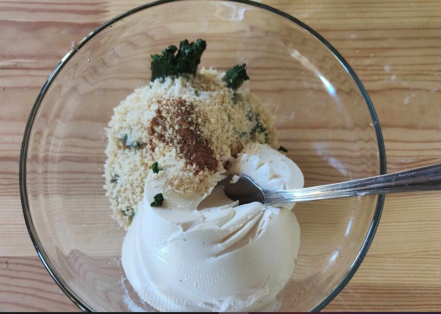 In einer Schüssel den Spinat und den geriebenen Käse zu Ricotta mischen.