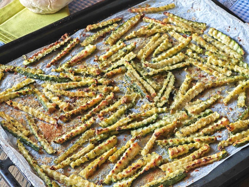 Die gratinierten Zucchini sind schnell zubereitet, ohne zu frittieren: Nachdem sie in Streichhölzer oder Stücke geschnitten wurden, werden sie mit Olivenöl und Paniermehl im Ofen gebacken, einfach super schnell!!!