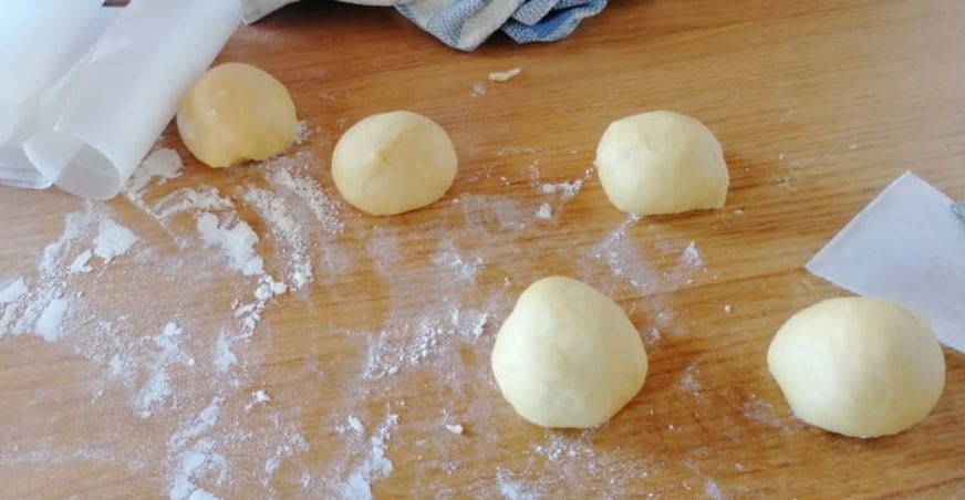 (Falls nötig, fügen Sie etwas Mehl hinzu, wenn der Teig klebrig ist, oder etwas Milch, wenn er zu hart ist).