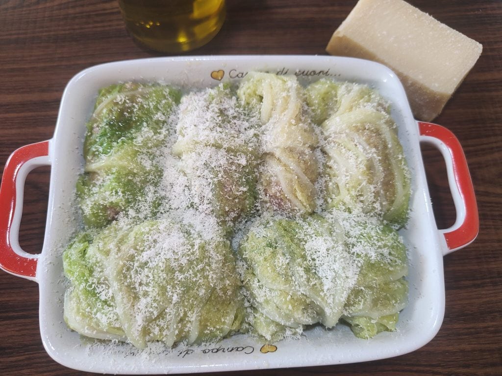 • Kochen Sie die Wirsingblätter einige Minuten lang in leicht gesalzenem Wasser (ca. 4/5 Minuten, je nach Größe der Blätter).