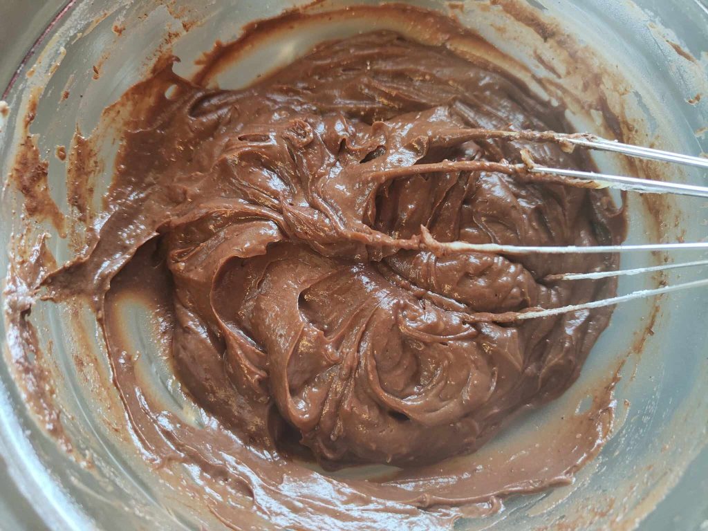 • Nach der Zeit die Schokoladencreme zurücknehmen und mit einem elektrischen Rührgerät ein erstes Rühren vornehmen.