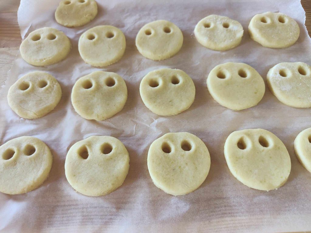 Ich muss sagen, dass sie bei mir zu Hause immer ein großer Hit sind, ob frittiert oder gebacken, und ich lasse mich von meinen Nichten und Neffen helfen, die entscheiden, ob sie lachen oder traurig sein sollen – ja, es sind meine Nichten und Neffen, die den Ausdruck der Gesichter bestimmen.