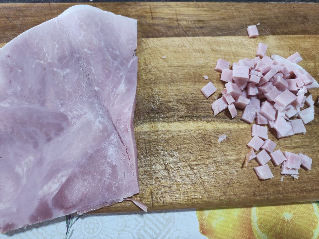 • 170 g gekochter Schinken (dicke Scheibe oder gewürfelter gekochter Schinken)