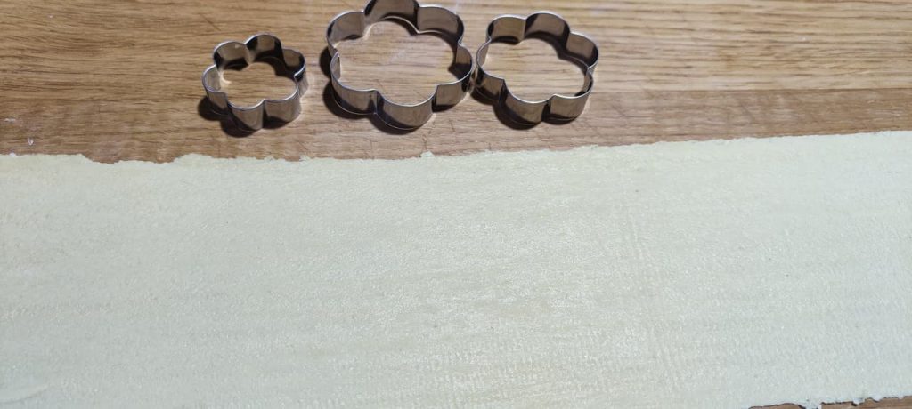 Nehmen wir die Ausstechformen in Blumenform und beginnen, verschiedene Blumen in verschiedenen Größen auszuschneiden.
