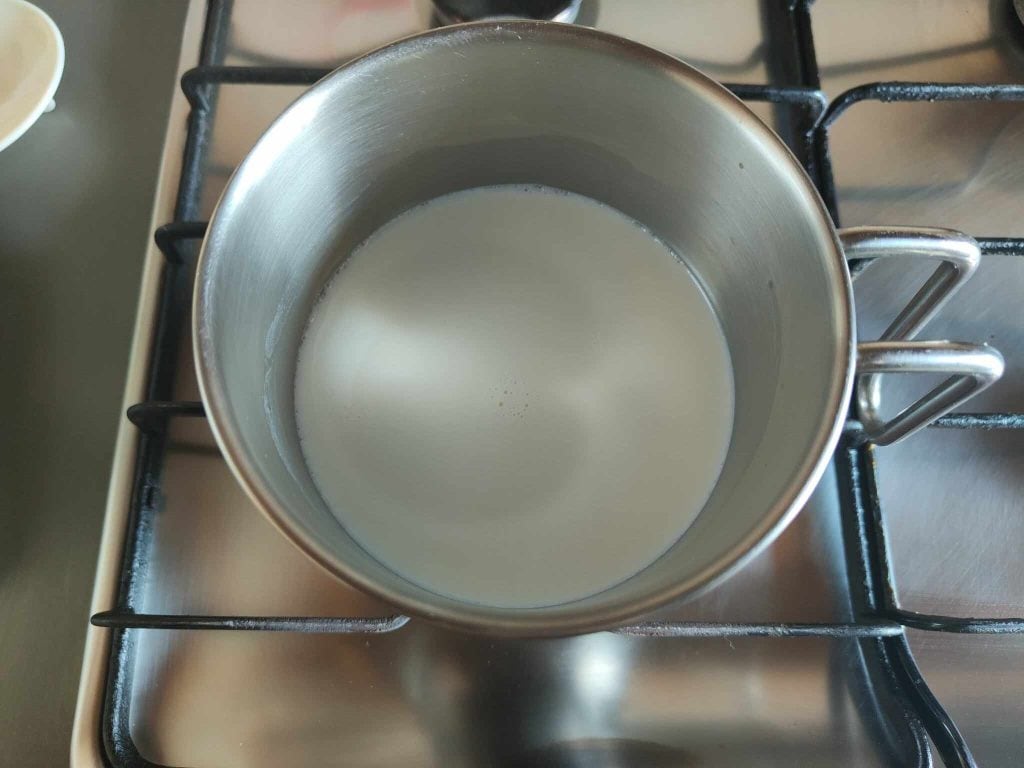 Die Milch mit den Vanillekernen zum Kochen bringen.
