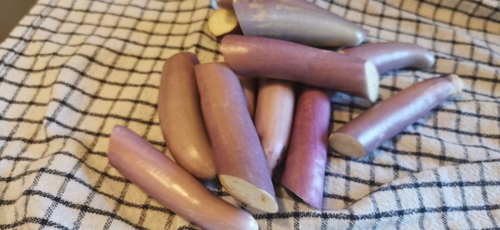 Die Perlina Aubergine ist eine längliche Aubergine, die bis zu 20 cm lang und ein bis drei Zentimeter dick werden kann. Diese besondere Form ist kein Ergebnis genetischer Manipulationen, sondern natürlicher Kreuzungen.