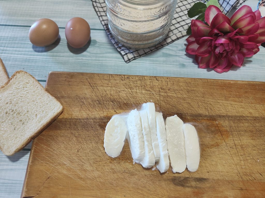 Die Mozzarella-Scheiben auf das Toastbrot legen.