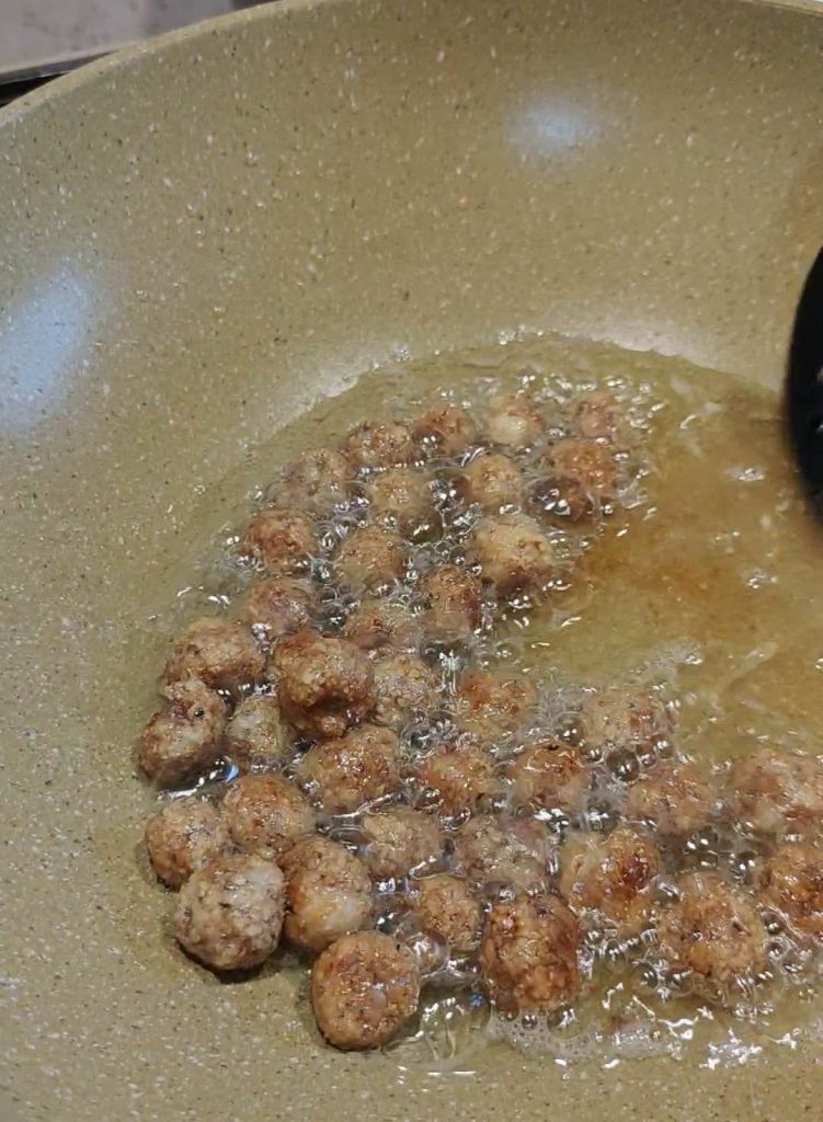 Fügen Sie die Fleischbällchen hinzu, aber nicht alle, einige lassen wir zum Überstreuen.