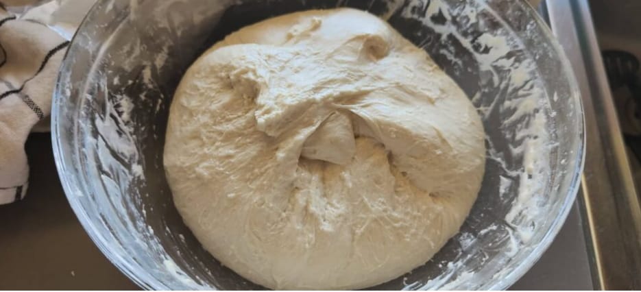 (Ich empfehle im ausgeschalteten Ofen mit eingeschaltetem Licht) Lassen Sie es für etwa 2/3 Stunden gehen, die Zeiten können je nach Saison und der Menge an verwendeter Hefe variieren.