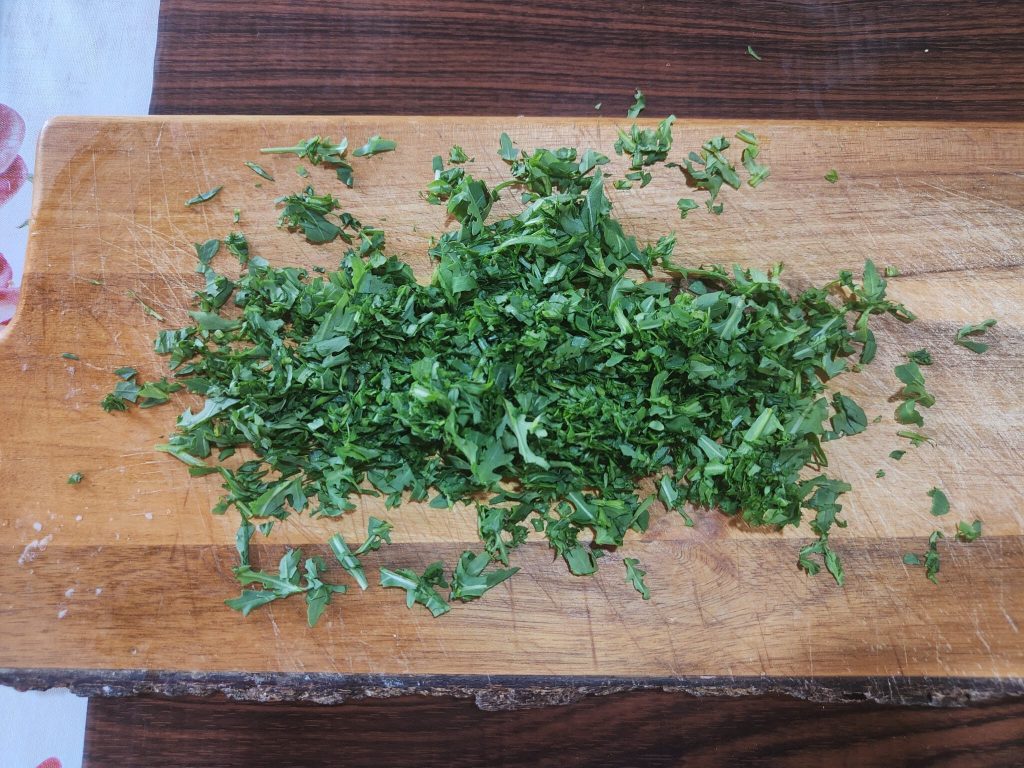 Ich habe Rucola verwendet, aber sie kann problemlos durch Zucchini oder Spinat ersetzt werden, je nach Geschmack und Vorliebe.