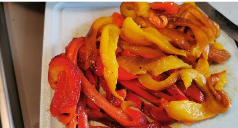 Falls nötig, können Sie die Paprika auch am Vortag rösten, putzen und erst zum Zeitpunkt des Verzehrs würzen.