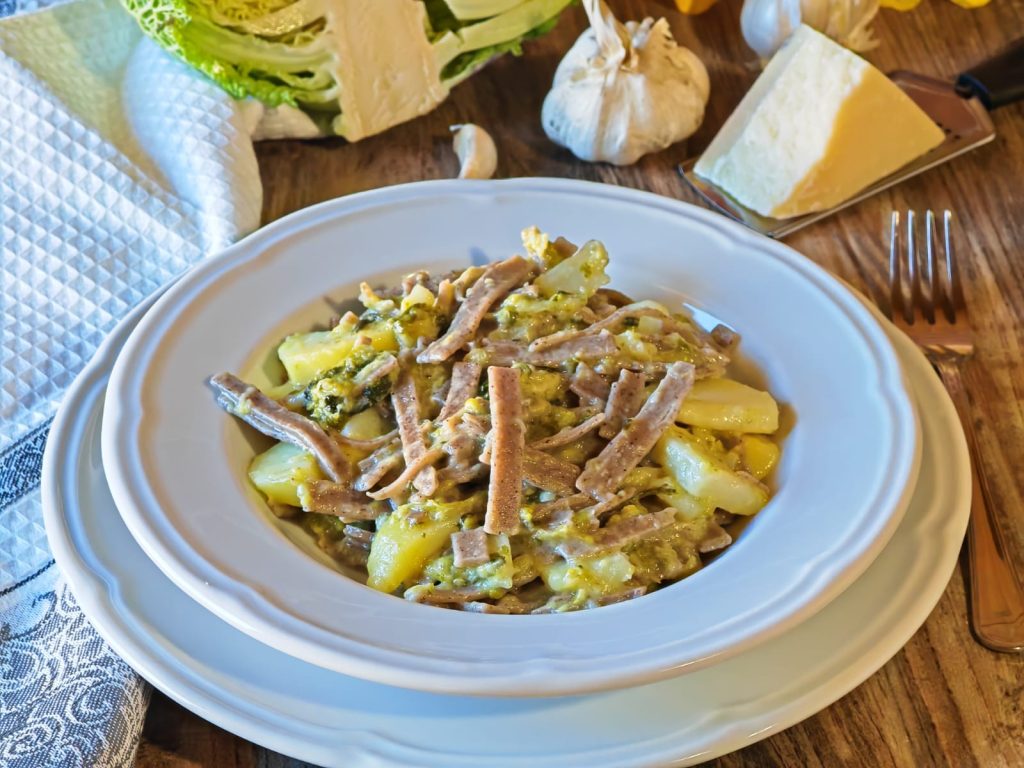 Das Rezept der Pizzoccheri der Valtellina Ein reichhaltiges und sättigendes Gericht, in das Sie sich verlieben werden und das Sie in die Vergangenheit zurückversetzt, ein authentischer, warmer und schmelzender Geschmack.