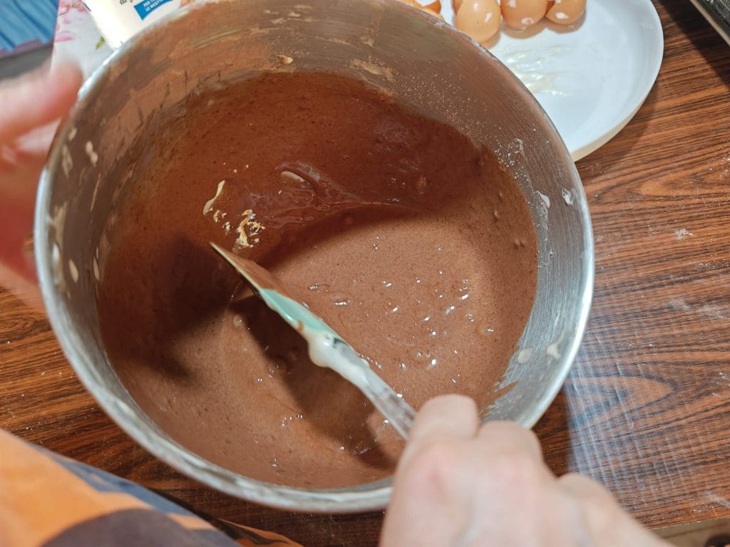 Arbeiten Sie weiter, bis die Schokolade vollständig eingearbeitet ist.