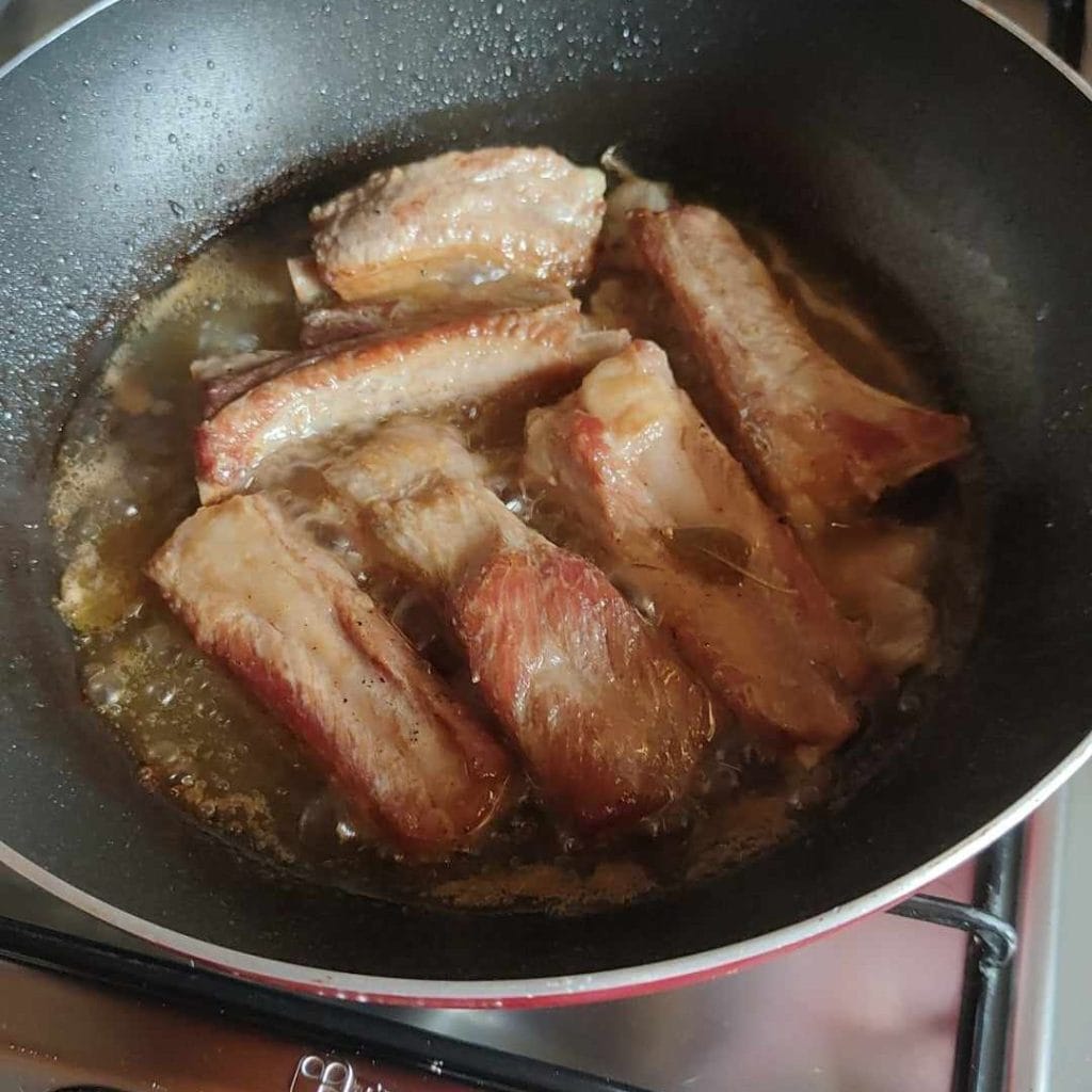 Die Schweinerippchen in der Pfanne sind sehr schmackhaft, zart und saftig. Jedes Mal, wenn ich sie zubereite, essen meine Neffen sie sehr gerne und sagen: „Diese Fleisch ist köstlich, Tante.“