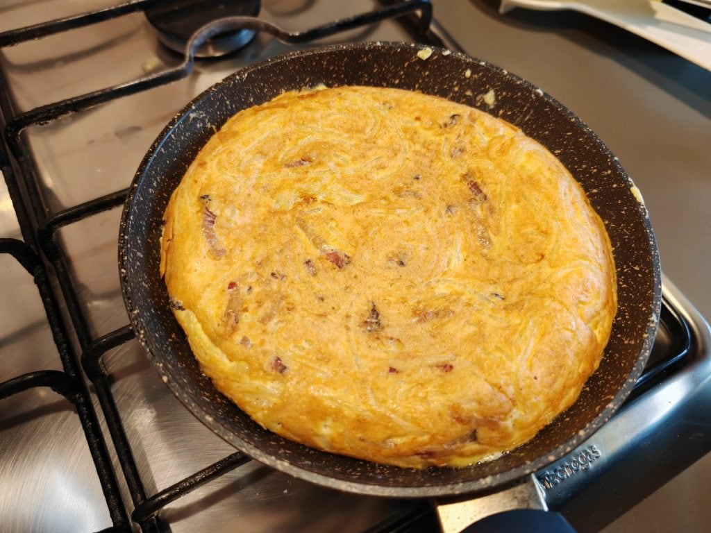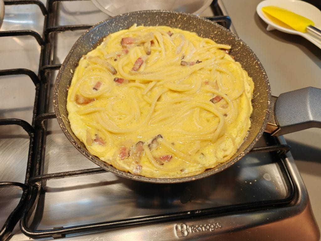 • Und hier ist die Spaghetti-Frittata alla Carbonara fertig.