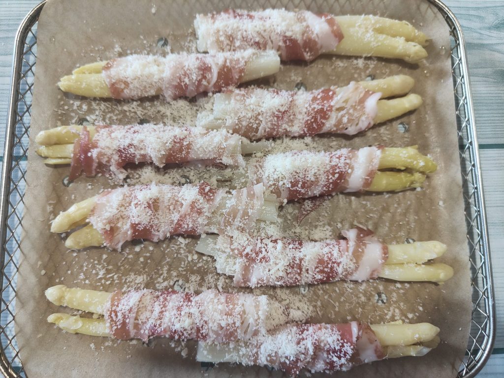 Tipp: Beim Kochen der Spargel nicht zu viel Salz hinzufügen, da der Speck bereits sehr würzig ist.