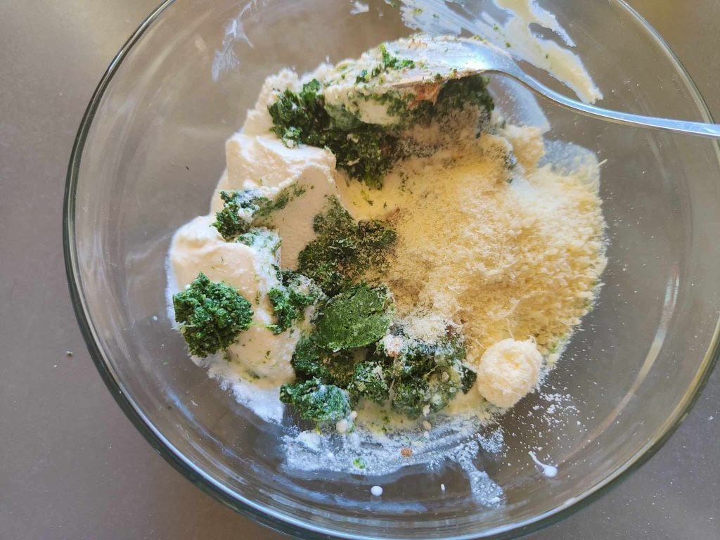 In einer Schüssel mische Ricotta mit Spinat und geriebenem Käse.