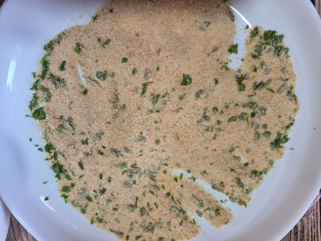 Wenn ihr der sandigen Panade noch mehr Pfiff geben wollt, könnt ihr die Paniermehl-Petersilie-Mischung nach eurem Geschmack anreichern: