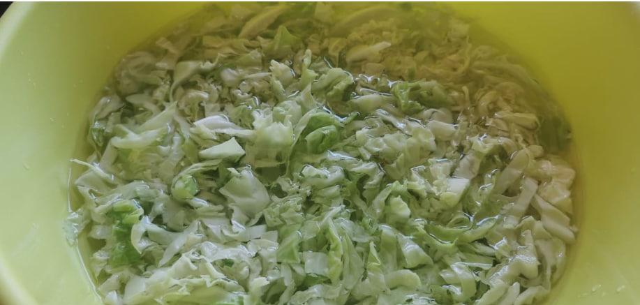 Beginnen wir damit, den Kohl in einem großen Topf mit leicht gesalzenem Wasser zu blanchieren, nachdem wir ihn gesäubert und in Streifen geschnitten haben.