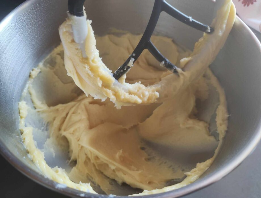 (Ich habe aus Bequemlichkeit einen Handmixer benutzt, weil ich Schmerzen im Arm habe).Es geht aber auch ohne Mixer.