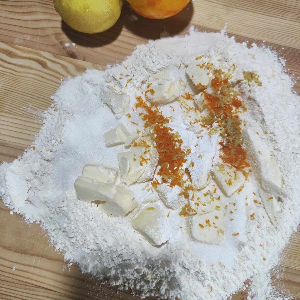 Ein sehr duftender Mürbeteig, das Grundrezept wird mit Zitronen- und Orangenschale aromatisiert, eine echte Delikatesse.