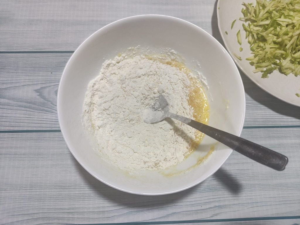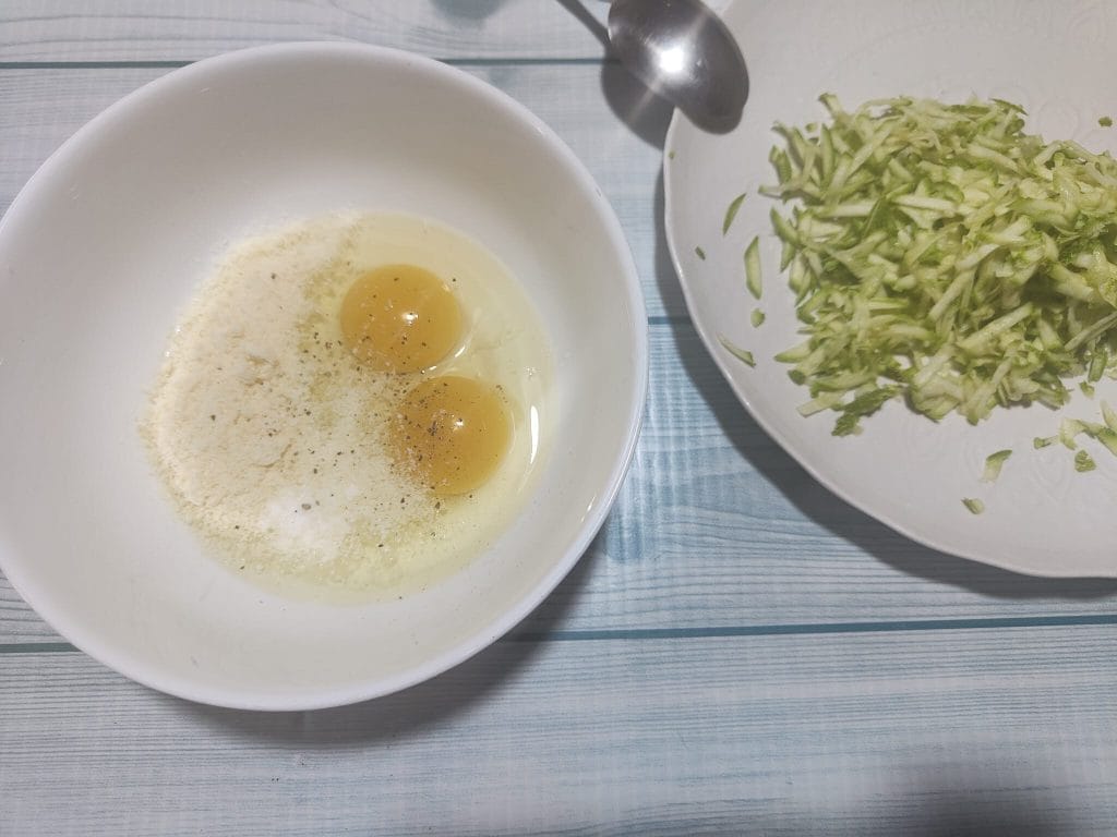 Nehmen Sie eine mittelgroße Zucchini, waschen, trocknen und reiben Sie sie.