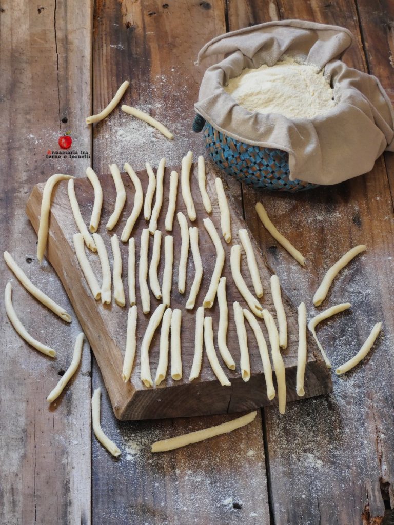 Auf diese Weise beginnt sich der Maccherone zu formen, aber er ist noch etwas dick.
