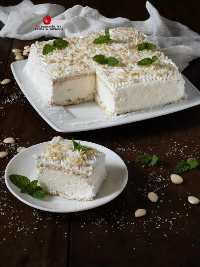 Jede Jahreszeit ist gut, um dieses Kokos-Mandel-Semifreddo zu genießen. Ein Dessert ohne Backen, einfach zu machen und für alle zugänglich, auch für diejenigen, die es noch nie zu Hause zubereitet haben. Ein Löffeldessert, das als Sonntagsnachspeise oder bei wichtigeren Festlichkeiten wie Weihnachten, Neujahr oder Ostern serviert wird. Ein hervorragendes Dessert zum Feiern eines Geburtstags, kann aber auch als Nachmittagsjause genossen werden. Zu Hause habe ich es für einen Sonntag mit Gästen zubereitet und ich muss sagen, es war ein voller Erfolg. Wenn ihr es auch zubereiten möchtet, folgt mir einfach in die Küche.