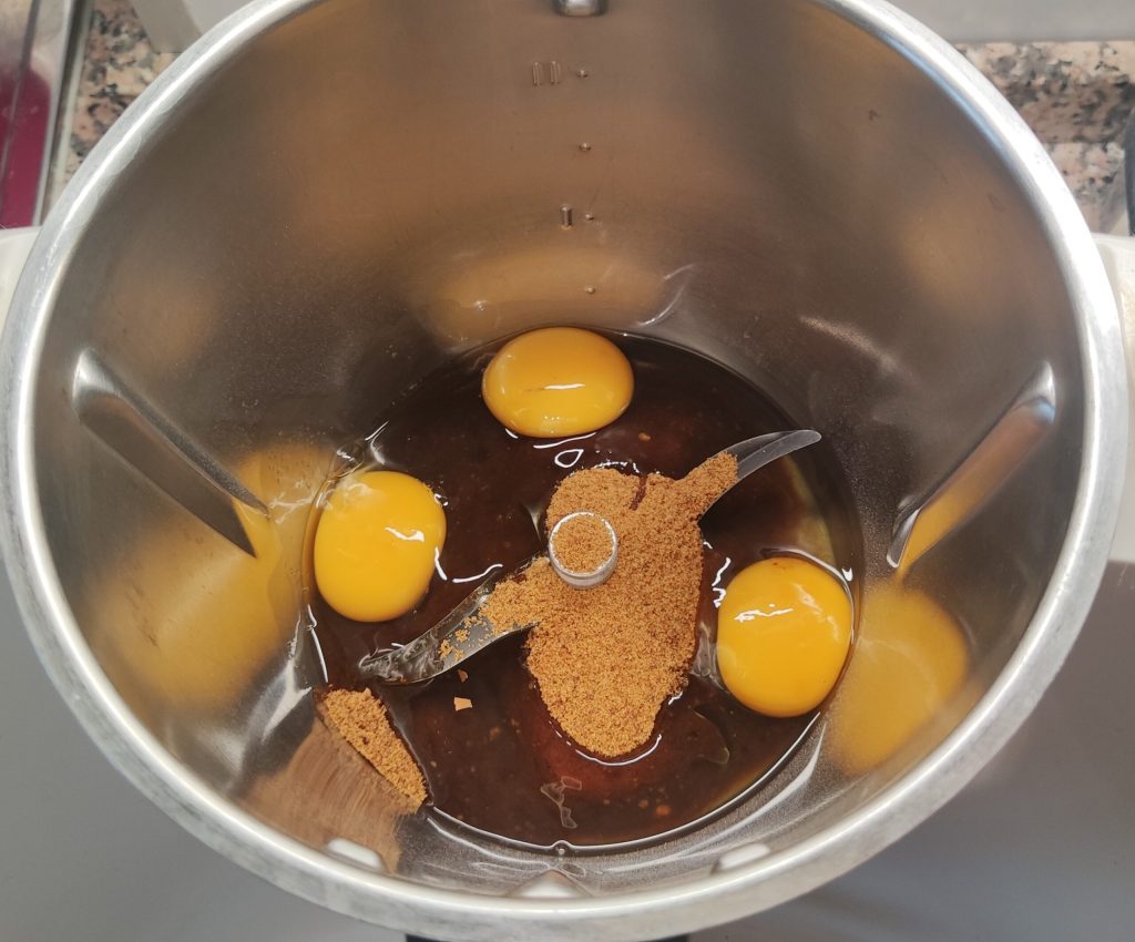 Ich backe im statischen Ofen bei 180 °C für 40/45 Minuten. Ich prüfe die Garstufe des mittleren Teils des Kuchens mit einem Zahnstocher, falls noch nicht genügend gegart, verlängere ich die Garzeit, indem ich die Temperatur auf 140 °C für weitere 5 Minuten senke und ihn mit einem Blatt Backpapier oder Aluminiumfolie abdecke. Ich nehme ihn aus dem Ofen und lasse ihn gut abkühlen, bevor ich ihn aus der Form nehme.Ich gebe den Zucker in den Mixtopf und breche die Eier, mische 1 min/Stufe 3.
