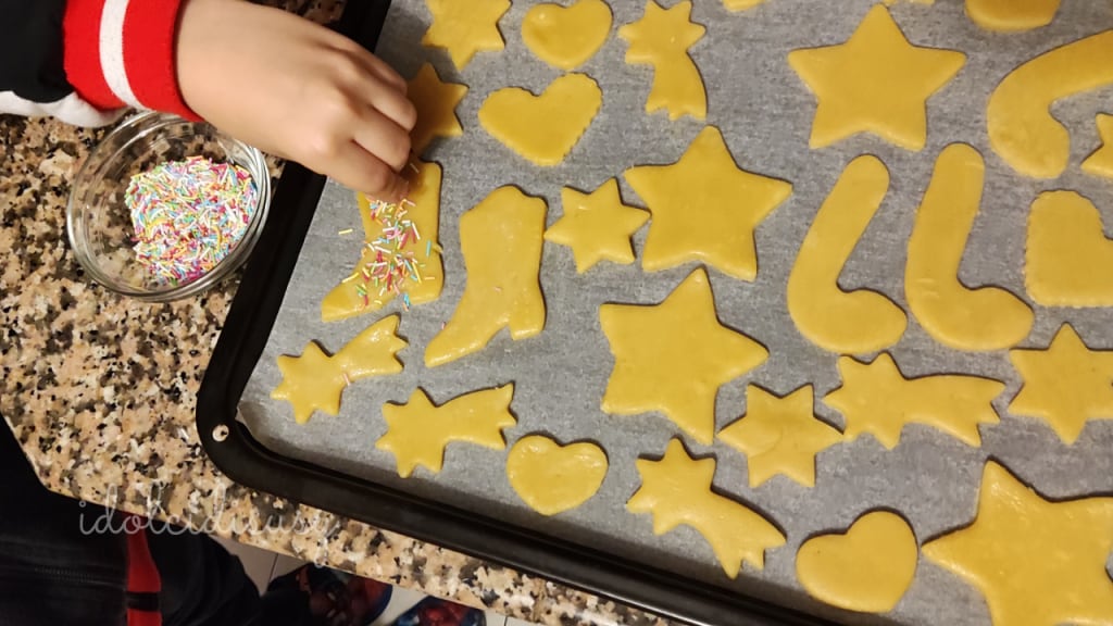 Die Befanini Kekse sind köstliche Mürbeteigplätzchen aus der toskanischen Tradition, verziert mit bunten Zuckerstreuseln, in verschiedenen weihnachtlichen Formen.