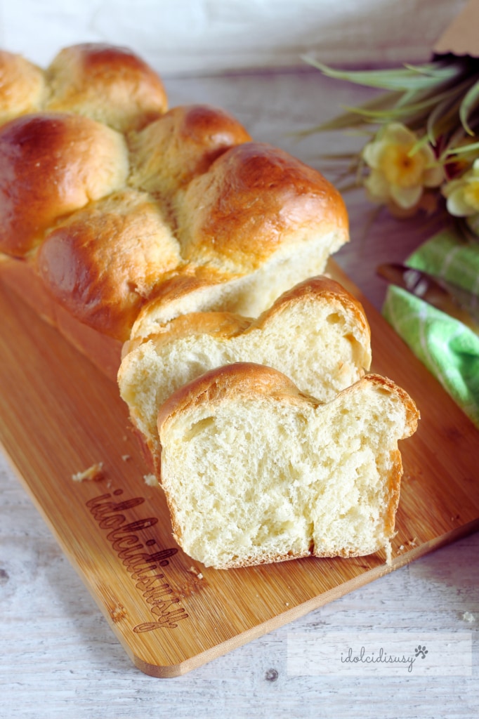 Das Brioche-Brot ist ein süßes Gebäck französischen Ursprungs, mit einer weichen und leichten Konsistenz und einem zarten Geschmack, der es perfekt für das Frühstück oder als Nachmittagssnack macht, in Scheiben geschnitten und mit Marmelade oder Schokoladencreme bestrichen.