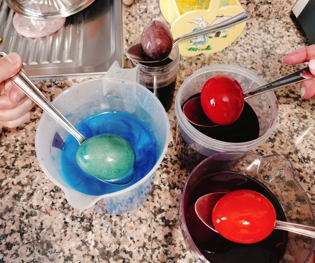 Gefärbte Ostereier mit Lebensmittelfarben