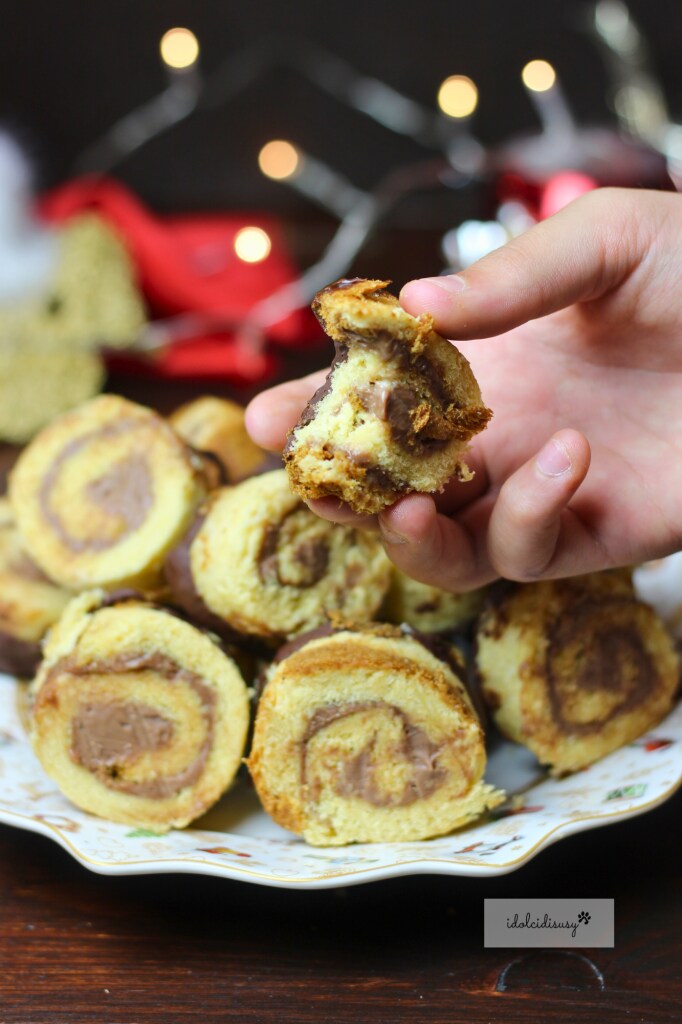 Zudem sind sie sehr einfach zuzubereiten und mit nur 4 Zutaten kannst du einen schönen und leckeren weihnachtlichen Nachtisch zubereiten. Ich habe die Rollen mit Mascarpone und Nutella gefüllt; wenn du einen knusprigen Effekt erzielen möchtest, kannst du auch gehackte Haselnüsse hinzufügen oder die Oberfläche, nachdem du sie in Schokolade getaucht hast, mit Kokosraspeln oder Zuckerstreuseln bestreuen.
