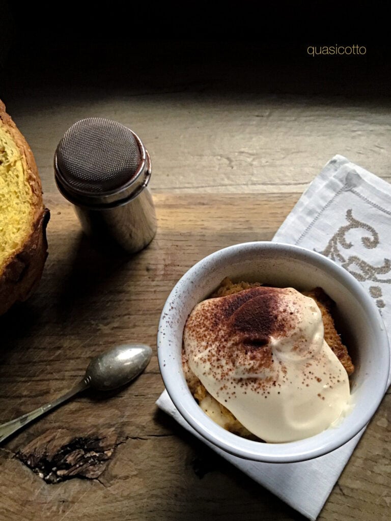 Natürlich! Panettone schmeckt nicht jedem, das weiß ich, auch wenn ich denke, dass die kandierten Früchte und Rosinen dieses Dessert sehr aufwerten. Auch mit Pandoro wird es köstlich sein, aber das Endergebnis wird dem ursprünglichen Tiramisu ähnlicher sein.