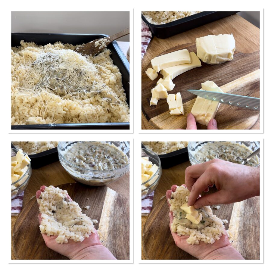 Schritte zur Zubereitung der Arancini mit Pilzen
