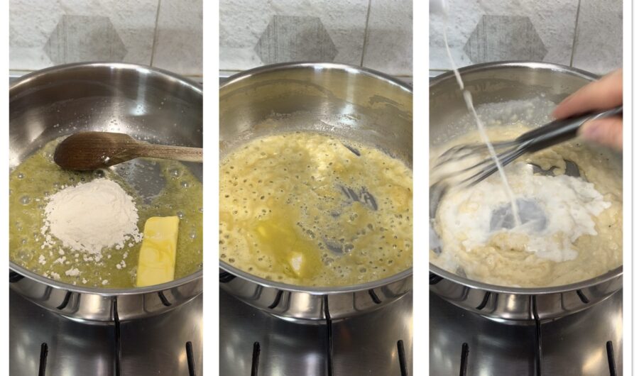 Béchamelsauce mit Safran, die einfache und schnelle Sauce, um köstliche Lasagnen und Aufläufe zuzubereiten, eignet sich auch hervorragend, um originelle, elegante und raffinierte Fleischgerichte zu begleiten. Wir alle kennen die Béchamel, manchmal machen wir sie sogar im Mikrowellenherd, aber habt ihr schon einmal probiert, sie mit Safran zu aromatisieren? Vor ein paar Tagen brauchte ich Béchamel, um eine weiße Ofenpasta mit Schinken und Käse zuzubereiten, und als sie fertig war sah ich die Safranpäckchen. Instinktiv rührte ich das gelbe Pulver in meine Béchamel — das Ergebnis war phänomenal!! Glaubt ihr mir nicht? Kommt mit in die Küche, ich bin sicher, der Geschmack der Safran-Béchamel wird auch euch überzeugen. Bevor wir aber in die Küche gehen: Wie immer erinnere ich euch, dass ihr, wenn ihr über alle meine Rezepte auf dem Laufenden bleiben wollt, meiner Facebook-Seite (hier) und meinem Instagram-Profil (hier) folgen könnt.