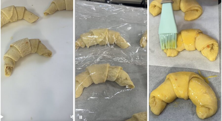 • Rollen Sie die Hörnchen von der Basis zur Spitze auf und formen Sie eine Halbmondform, wie im Foto dargestellt.
