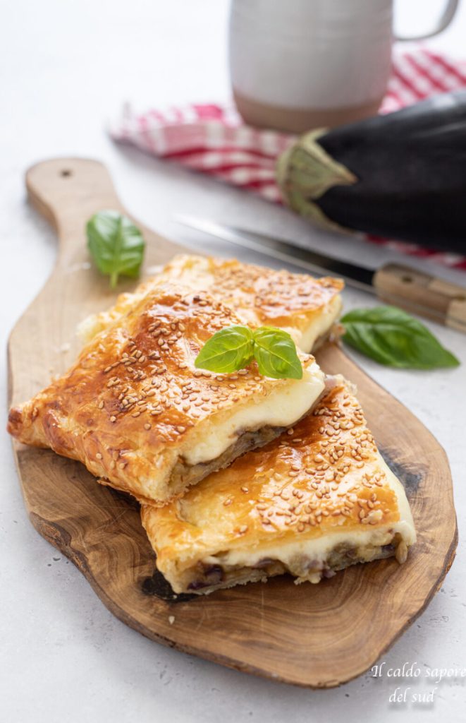 –Blätterteig mit Auberginen, Schinken und Mozzarella;