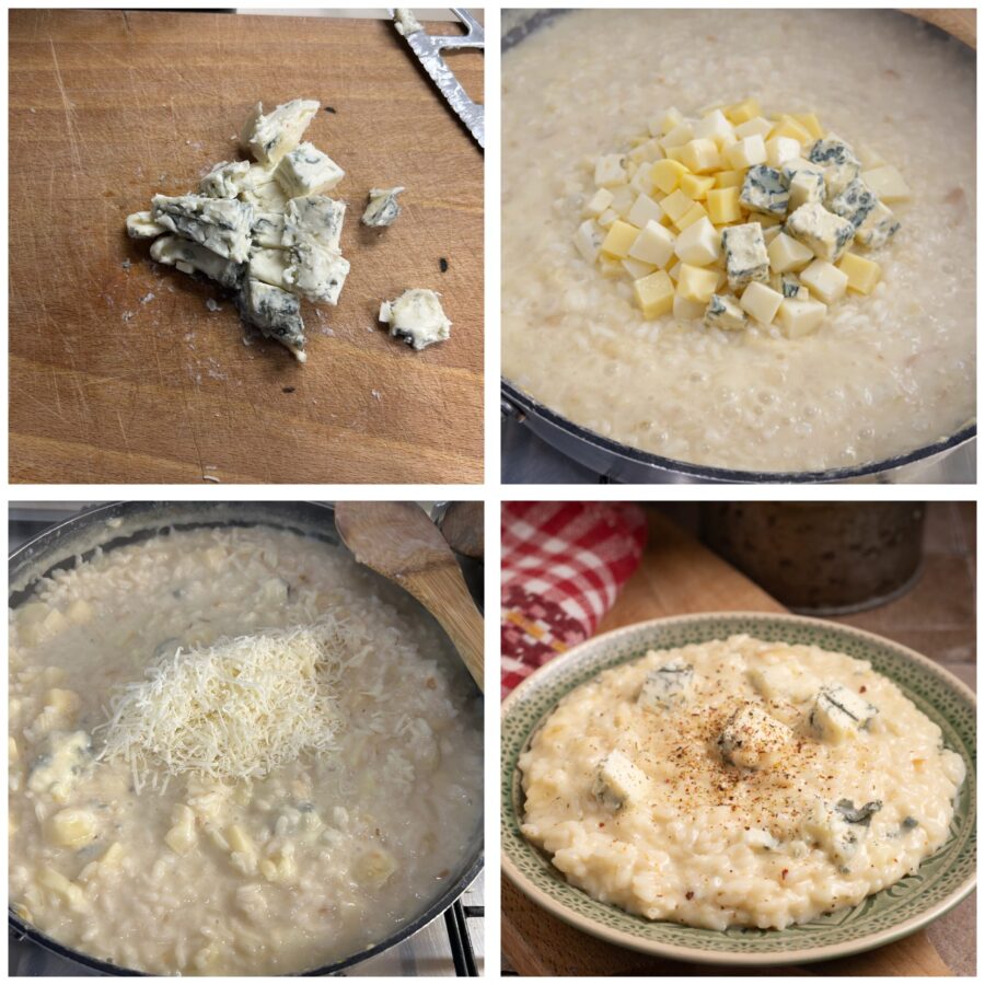 Schritte zur Zubereitung des Risottos mit vier Käsesorten