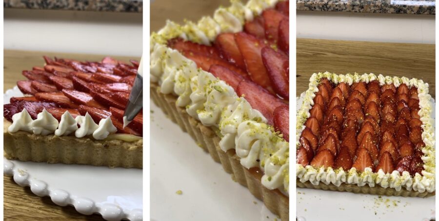 Schritte zur Zubereitung der Erdbeertarte mit Creme
