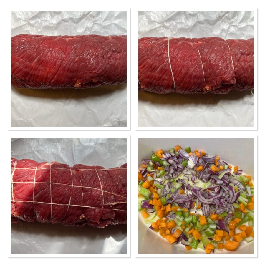 • Bindet die Roulade mit dem Küchengarn fest zusammen.