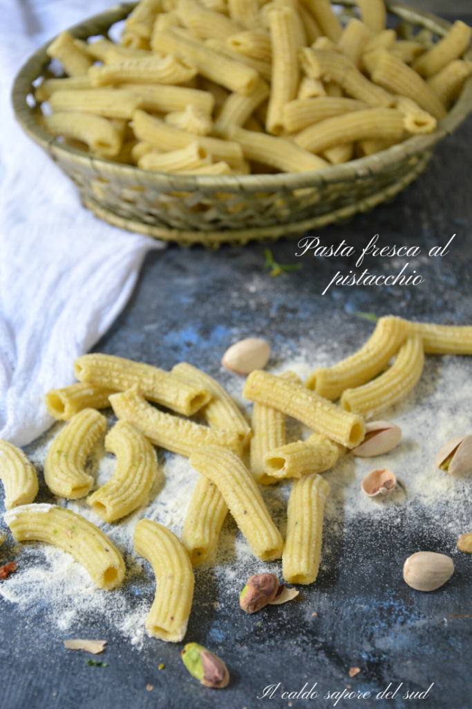 Frische Pasta mit Pistazien, Teig für Pastapresse, Nudelmaschine und „Nonna Papera“, zu unterscheiden vom Rezept Pasta mit Pistazien- und Basilikum-Pesto