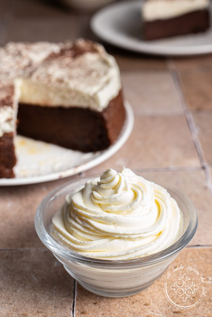 Die Frosting-Variante, die ich euch heute vorschlage, ist meine Lieblingsvariante: überhaupt nicht zu süß, gut ausbalanciert und zart. Ich habe sie bei Kuchen wie dem Chocolate Guinness Cake oder meiner Kaki- und Kakao-Torte verwendet. Sie wird aus einer Basis aus Frischkäse, Sahne und Mascarpone hergestellt. Diese drei Zutaten zusammen ergeben ein leckeres Frosting, das sich von den traditionelleren Butterfrostings dadurch unterscheidet, dass es nicht ermüdet, sondern Lust auf mehr macht. Kleiner Hinweis: Ich bereite dieses Frosting mit wirklich wenig Zucker zu, damit das fertige Dessert nicht ermüdend wirkt; wenn ihr möchtet, könnt ihr gern noch etwas Zucker hinzugeben. Ab in die Küche: Bereiten wir zusammen das Grund-Frosting mit Frischkäse und Mascarpone zu. Bevor wir die Ärmel hochkrempeln, erinnere ich euch daran, dass ihr, wenn ihr über alle meine Rezepte informiert bleiben wollt, meiner Facebook-Seite (hier) und meinem Instagram-Profil (hier) folgen könnt.