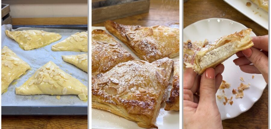 Heute stellen wir Schritt für Schritt die mezza sfoglia her, dieselbe Basis, die auch für die Cipolline verwendet wird, nur etwas süßer, und daraus bereiten wir unsere Raviole aus dem Ofen, so gut wie aus dem Café. Wenn ihr keine Zeit habt, probiert die schnellere Variante der gebackenen Raviole mit fertigem Blätterteig, ein superschnelles, praktisches und trotzdem sehr verlockendes Dessert.