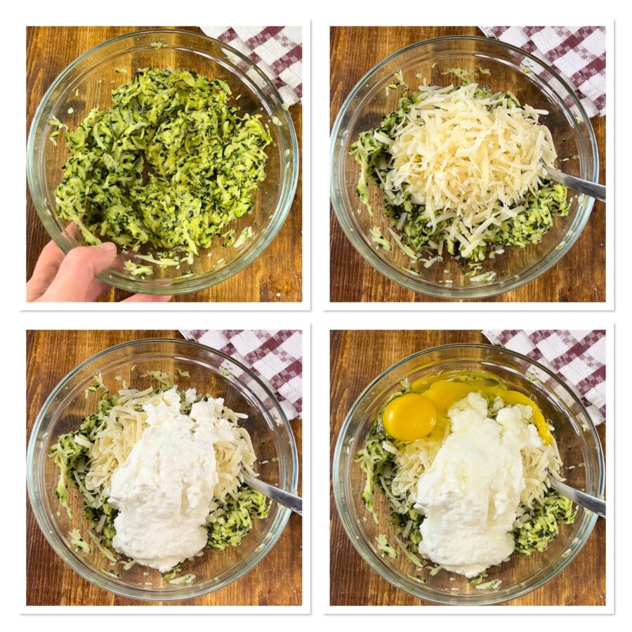 Schritte zur Zubereitung der gebackenen Zucchini-Ricotta-Bällchen